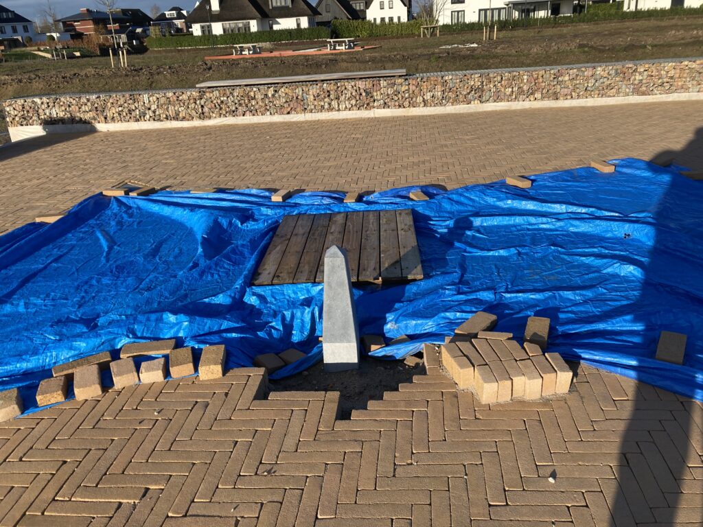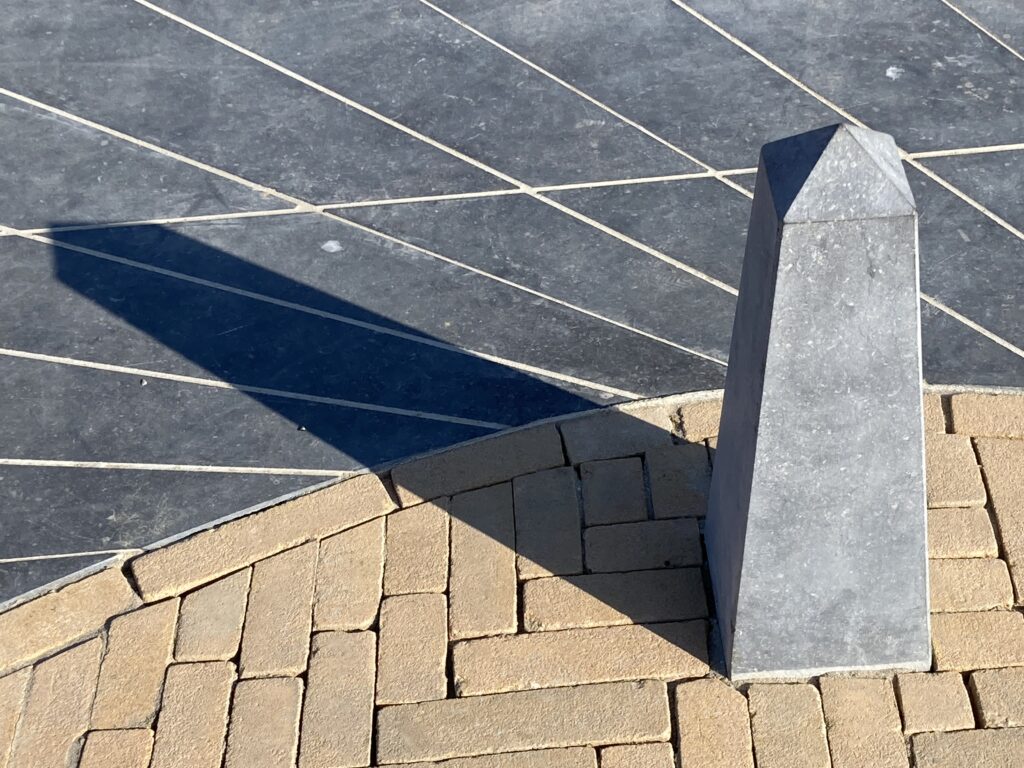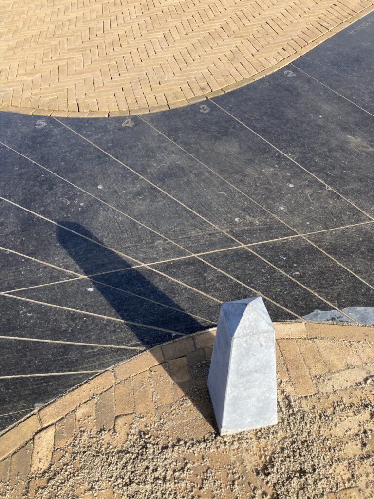 Na een periode van opnieuw heel veel regen en vorst in de grond, is de bestrating eindelijk afgerond kunnen worden. En natuurlijk moeten we op verschillende momenten nu testen of dat de schaduwwerper ‘werkt’. De officiĆ«le onthulling van de zonnewijzer zal tegelijk met de opening van het archeologiepark ergens in het voorjaar gebeuren. We testen op bepaalde tijdstippen, maar ook als de winter overgaat in de lente.