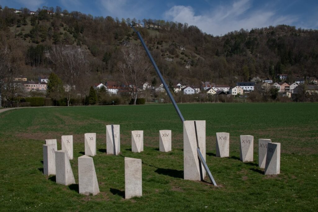 Abe en Will Maaijen maakten een fietsreis van Katwijk aan Zee naar Regensburg. Zij reden de Limesroute (maart 2025) en troffen onderweg enkele mooie zonnewijzers aan. Abe wilde ze met ons delen. Als eerste kwamen ze het zonnewijzerstadje Röttingen tegen.