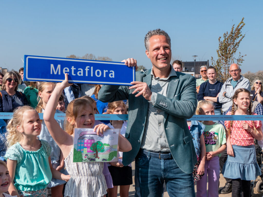 Op zaterdag 12 april 2025 is op een stralende zonovergoten dag, de zonnewijzer in het archeologiepark van Meteren officieel onthuld. Er was een grote opkomst vanuit de inwoners van de Plantage. Zowel jong als oud was vertegenwoordigd. Tijdens de opening van het archeologiepark werd ook de nieuwe naam van het park bekend gemaakt. Fenna had meegedaan aan een tekenwedstrijd en de naam verzonnen en daarmee gewonnen. Ze mocht een naambord onthullen en er ook een in ontvangst nemen.