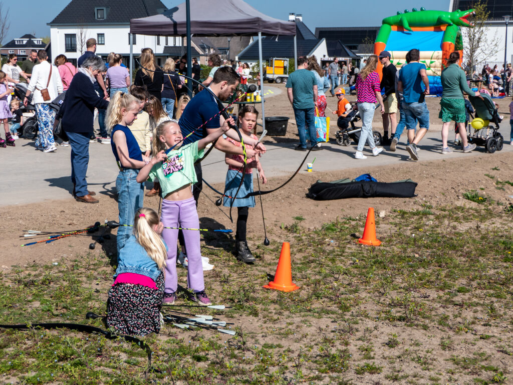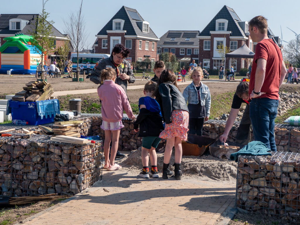 Daarna bedankte Karine iedereen voor ieders bijdragen aan de realisatie van de zonnewijzer. Vervolgens kon iedereen door het park dwalen en genieten van verschillende activiteiten die op diverse plekken in het park georganiseerd werden. Boven op de ’terp’ werd uitgelegd hoe men tot het idee van het park gekomen was. In het Huis te Meteren vertelde de HKWB over de historie van het huis. Voor de kinderen was er kruisboog schieten, sap fietsen, springen op het luchtkussen en bij de scouting was er vuur om marshmallows te roosteren. Ook voor de inwendige mens was goed gezorgd en waren er poffertjes die gretig aftrek vonden.